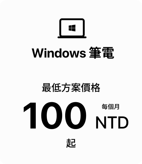 訂閱 Microsoft 365 Business Standard 或以上版本, 即可享有 高補貼的企業筆電租賃方案。 一個 Microsoft 365 授權,即可對應一台筆電租賃, 流程簡單、管理高效、整體成本更具效益。